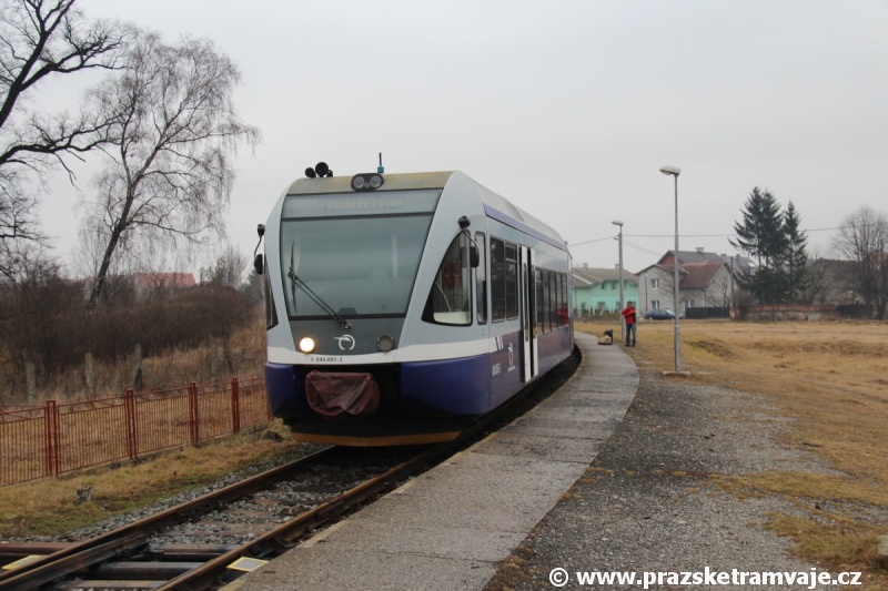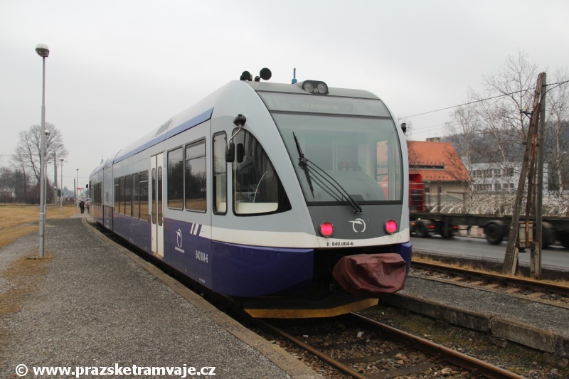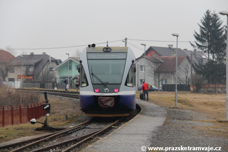 Mezi Tatranskou Lomnicí a Studeným potokem pendluje motorová jednotka 840 005-3, která ve Studeném potoku vyčkává na své cestující. | 15.1.2014 Motorová jednotka 840 004-6 mířící do Kežmaroku vjíždí do stanice Studený potok. | 15.1.2014 Motorová jednotka 840 004-6 mířící do Kežmaroku vyčkává na křižování s protijedoucím motorovým vozem. | 15.1.2014