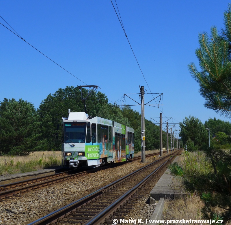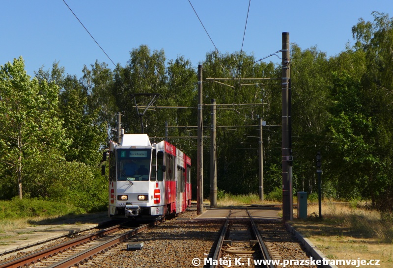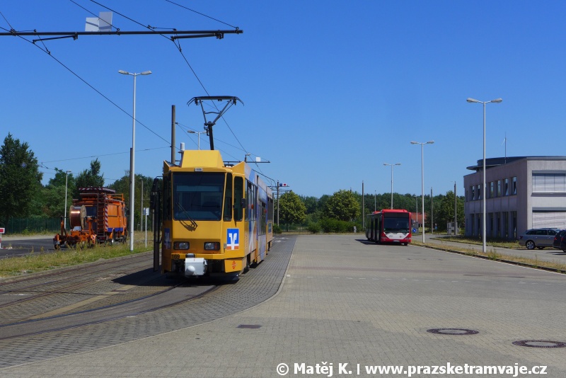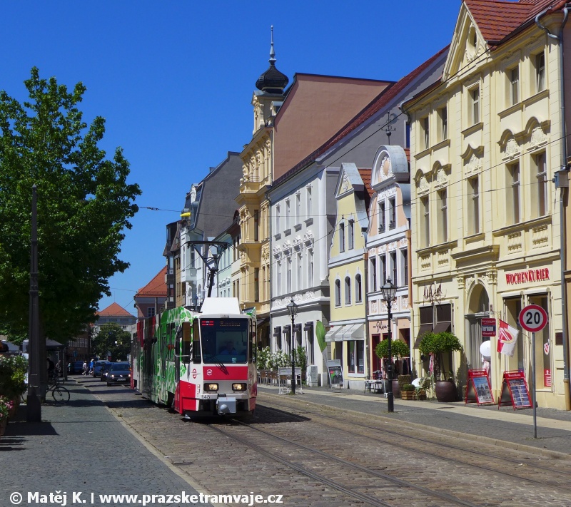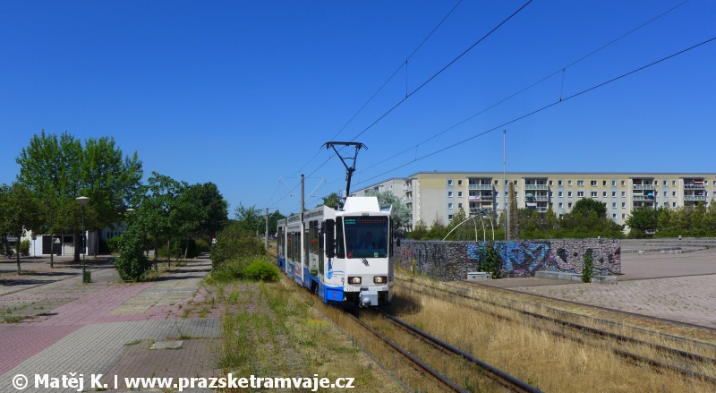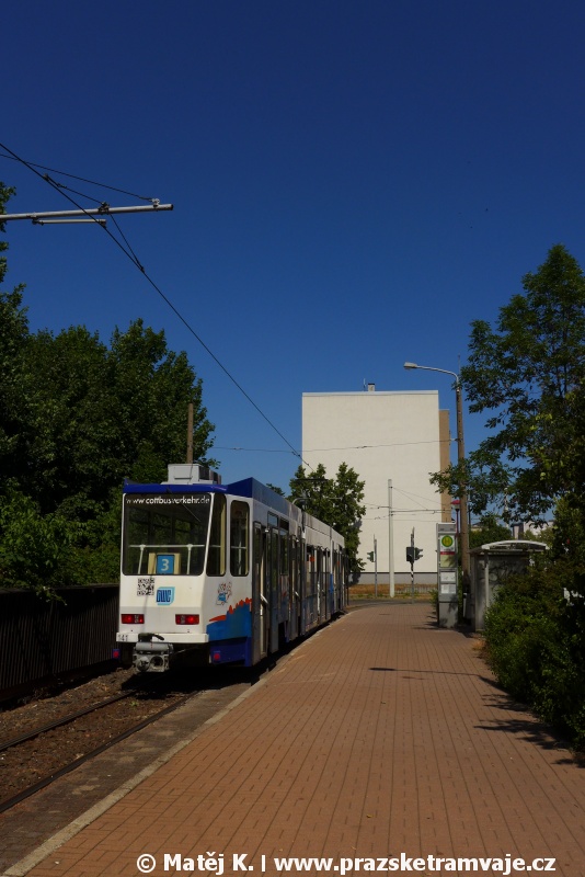 Tramvaje se zde na úzkém rozchodu prohánějí po dvaceti kilometrech kolejí. V současnosti je ale severojižní spojnice města zasažena výlukou v souvislosti se stavbou nového přestupního terminálu u hlavního nádraží. Trasa linky 1 na konečnou Schmellwitz, Anger je také v dlouhodobé výluce a není jasné, zda se na tuto větev tramvaje ještě někdy vrátí. V dobé mé návštěvy začala též prázdninová výluka trati na sídliště Madlow.